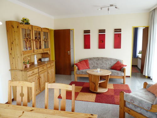 Die Wohnung ist 50m2 groß und befindet sich im 1. Obergeschoss des Hauses Am Deich 43. Vom Wohn-/ Esszimmer aus haben Sie Zugang zum Balkon, hier können Sie gemütlich sitzen und den Seeblick auf die Ostsee genießen. Es gibt ein Schlafzimmer mit Doppelbett und ein Kinderzimmer mit 2 Einzelbetten. Für Familien mit 1-2 Kindern ist diese Wohnung gut geeignet.